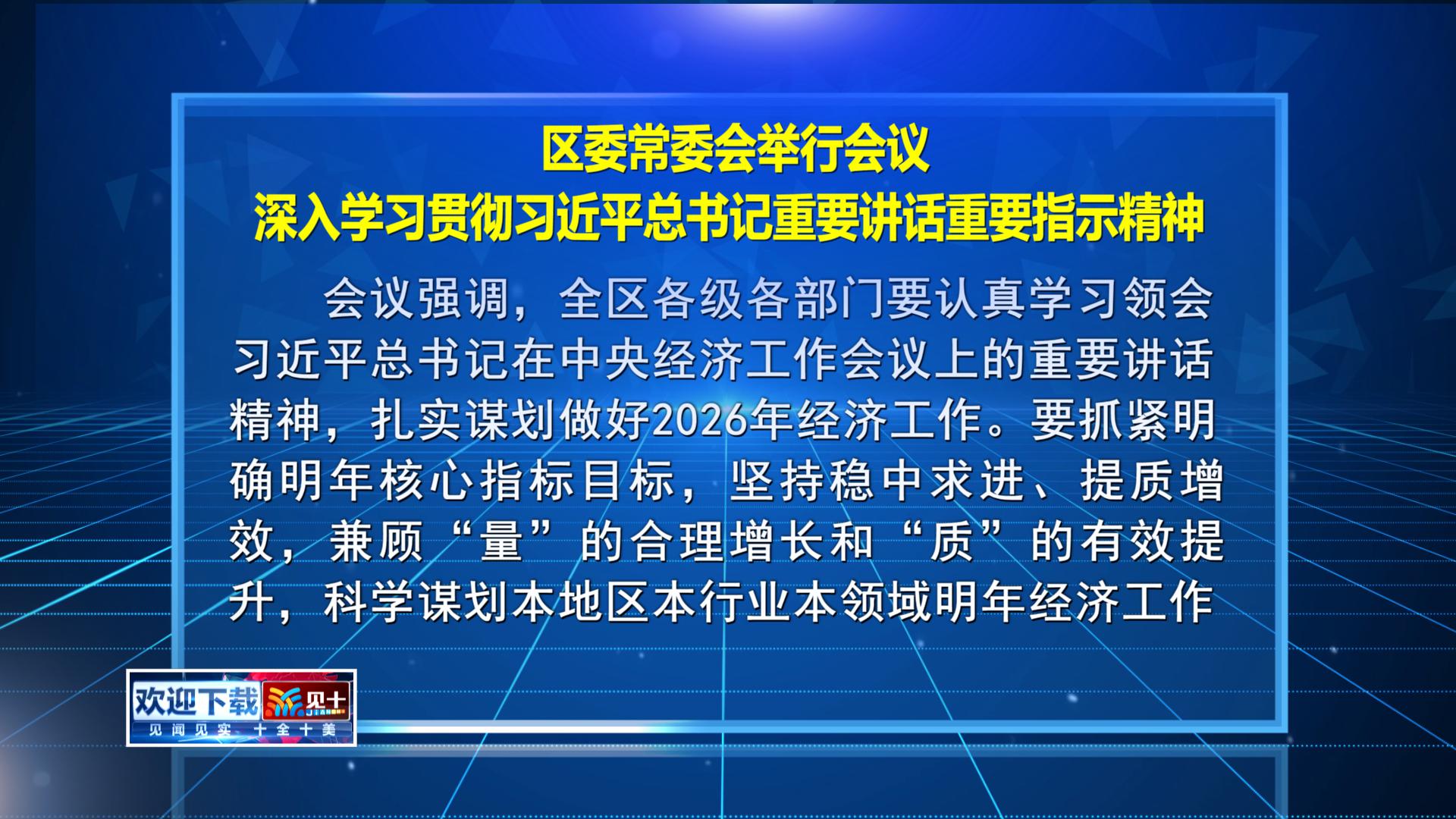 • 区委常委会举行会议 深入学习贯彻习近平总书记重要讲话重要指示精神