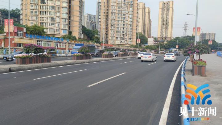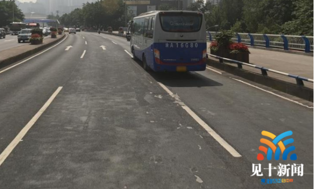 “为有效解决问题,本次路面整治采用由重庆交通大学专业团队研发的‘UTM’超薄层罩面。‘UTM’属于柔性材料,厚度采用20mm,具有构造深度大、抗滑性、抗渗性、耐磨性好、降噪效果明显的特点。精铣刨后铺筑薄层罩面前洒布高性能粘层油,增加上面层与下承层的粘接作用,粘层油渗入下承层可起到封闭表面空隙,封水效果佳。”九龙坡区城市管理局市政处相关负责人介绍道“摊铺完后,待沥青冷却,便可通车,具有节约能源和养护速度快、开放交通快的优点,是一种新兴的经济有效的高性能养护技术。”