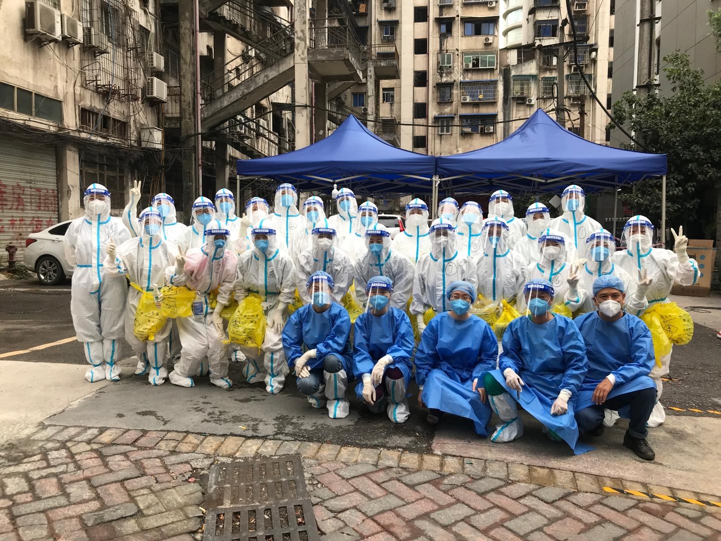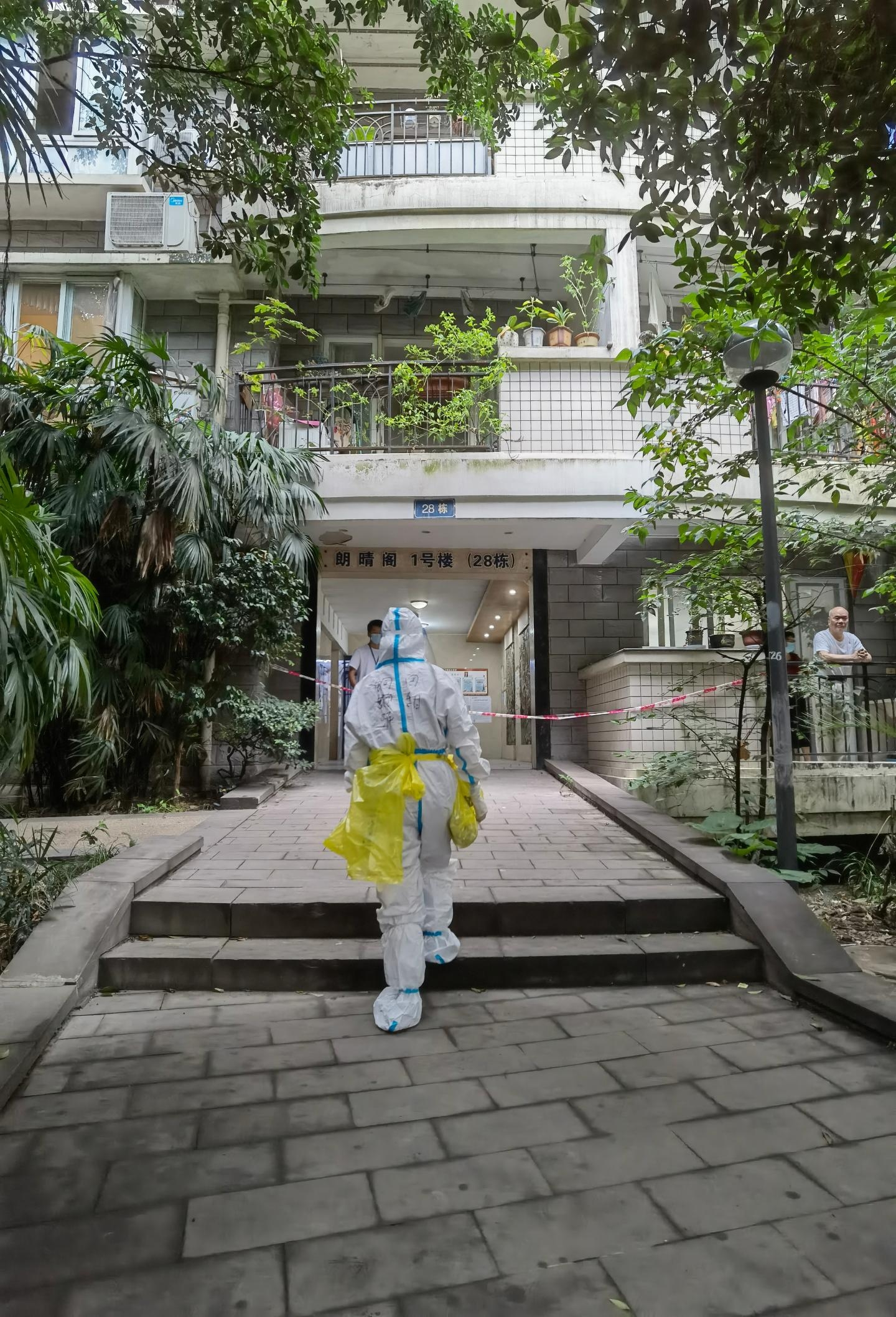 精神奕奕、整装待发,高新区人民医院支援九龙社区分队8月30日在颐香美庭爬楼开展一对一入户核酸采样。