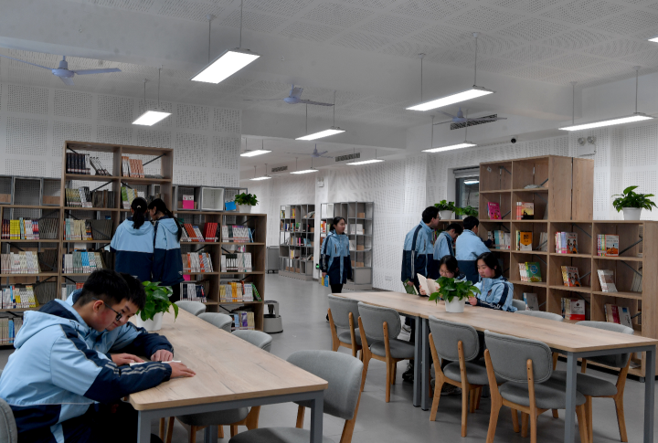 ▲学生们在图书室翻阅书籍。