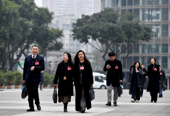 ▲步入会场。