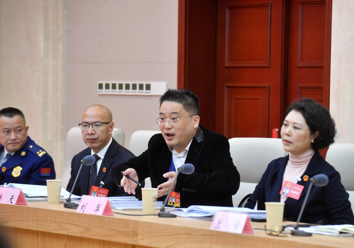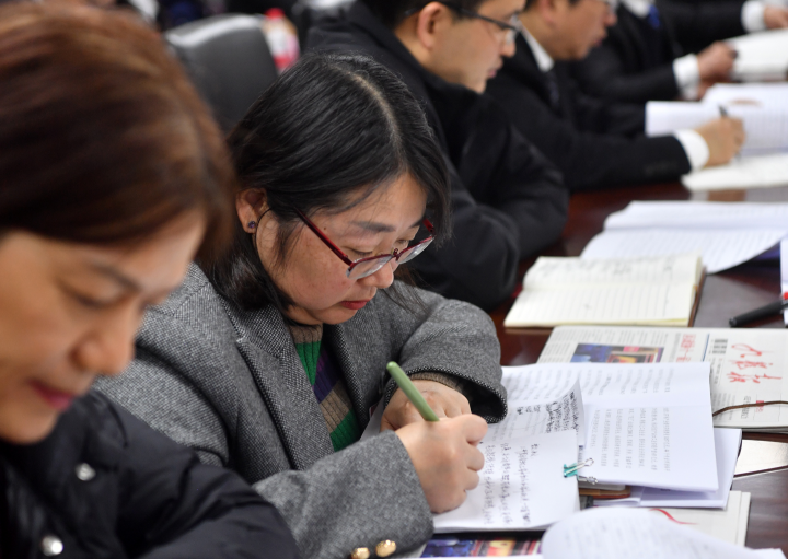▲仔细阅看会议材料。