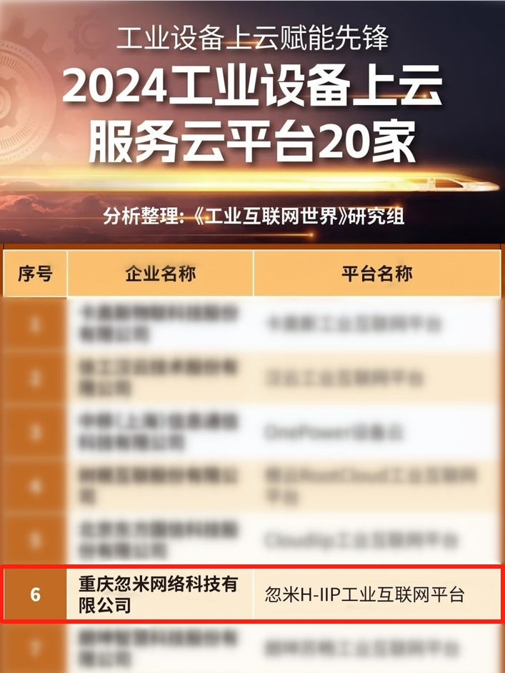 聚焦“满天星”|位列前6!忽米科技入选2024工业设备上云服务云平台20家