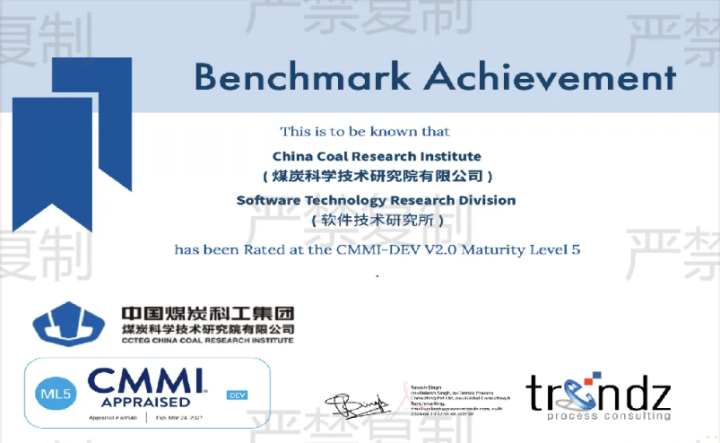 聚焦”满天星“| 中国煤科煤科院顺利通过CMMI V2.0五级认证