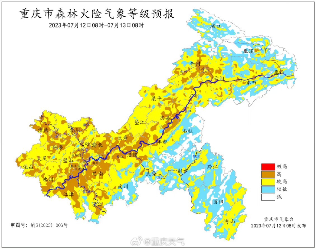 重庆继续发布高温橙色预警 多地森林火险气象等级高