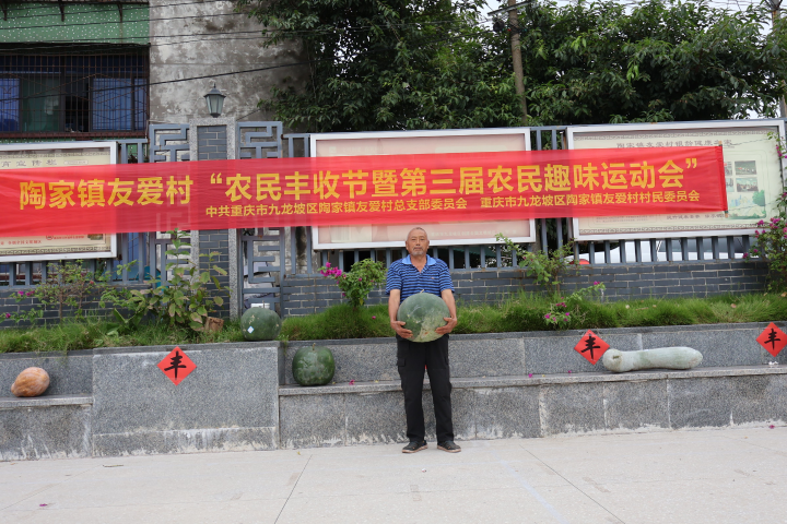 村民晒丰收 种出60多斤冬瓜 50多斤南瓜