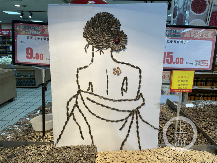靓!超市营业员用瓜子辣椒拼出美女和火烈鸟