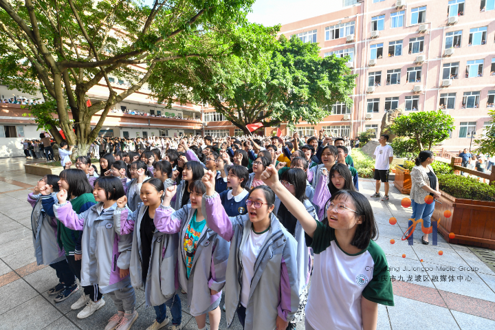 为梦一搏 不枉青春奋勇 高考前夕 田家炳中学上千学子课间“喊楼”送祝福