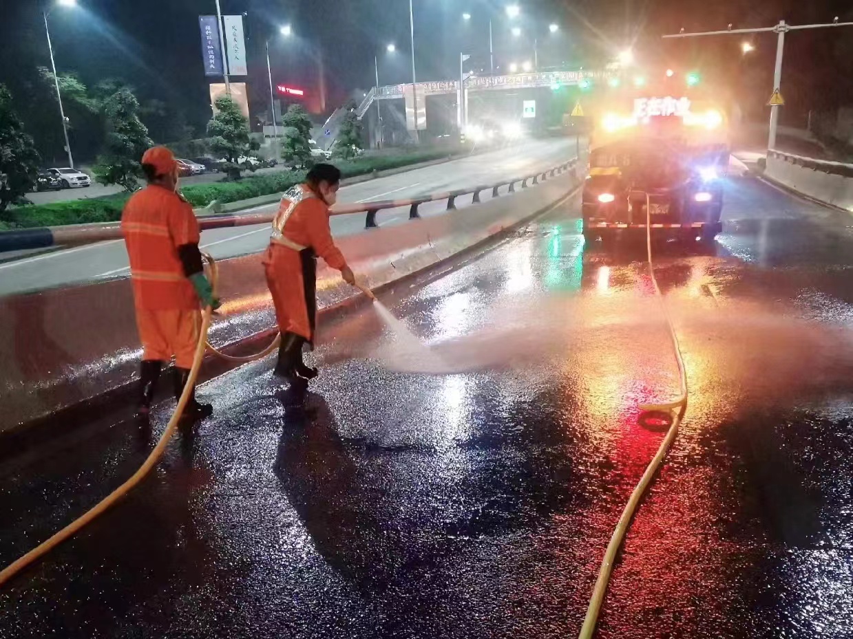 区城市管理局及时处置渣土运输污染路面