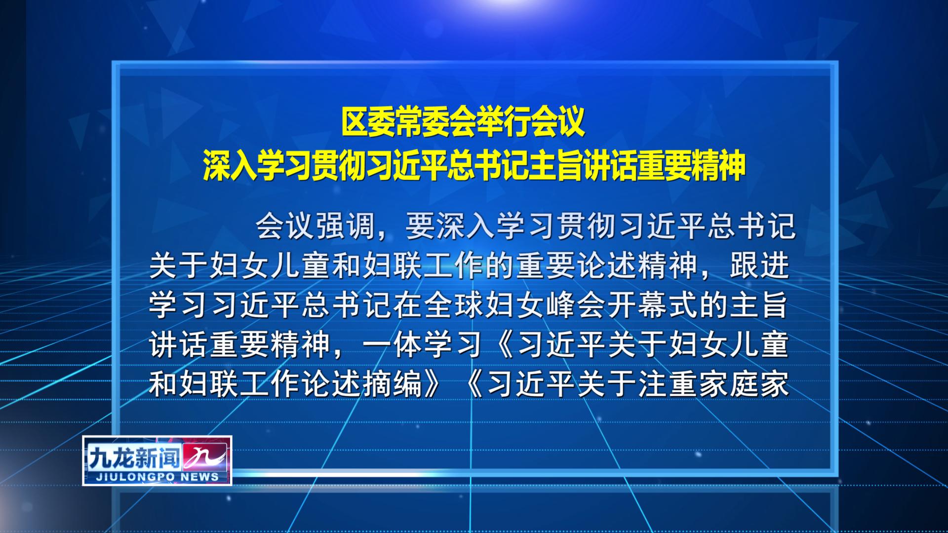 区委常委会举行会议 深入学习贯彻习近平总书记主旨讲话重要精神