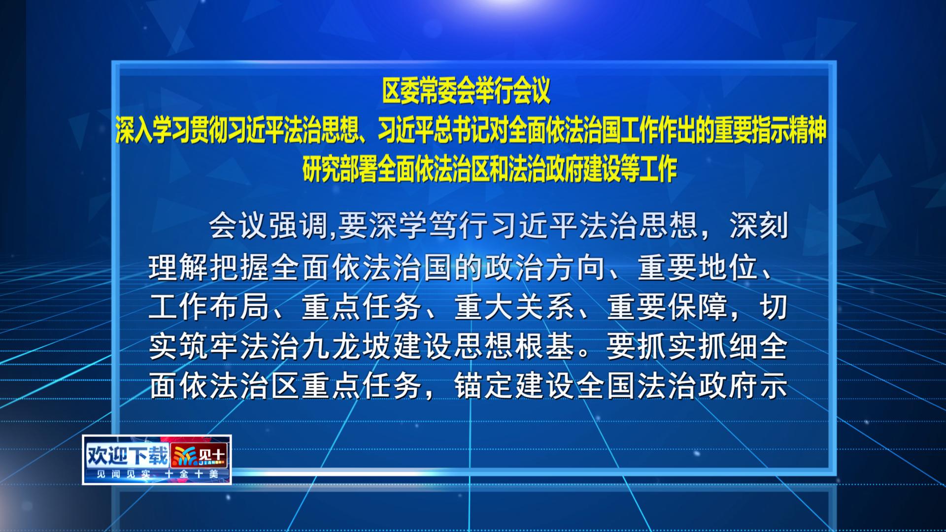区委常委会举行会议 深入学习贯彻习近平法治思想、习近平总书记对全面依法治国工作作出的重要指示精神
