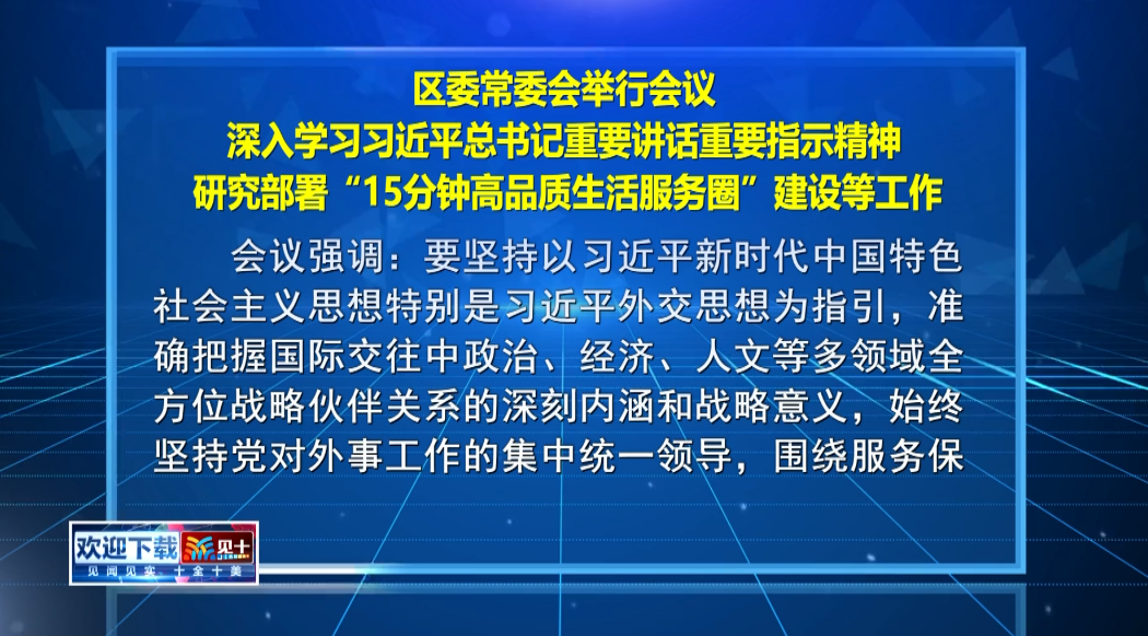 区委常委会举行会议 深入学习习近平总书记重要讲话重要指示精神 研究部署“15分钟高品质生活服务圈”建设等工作