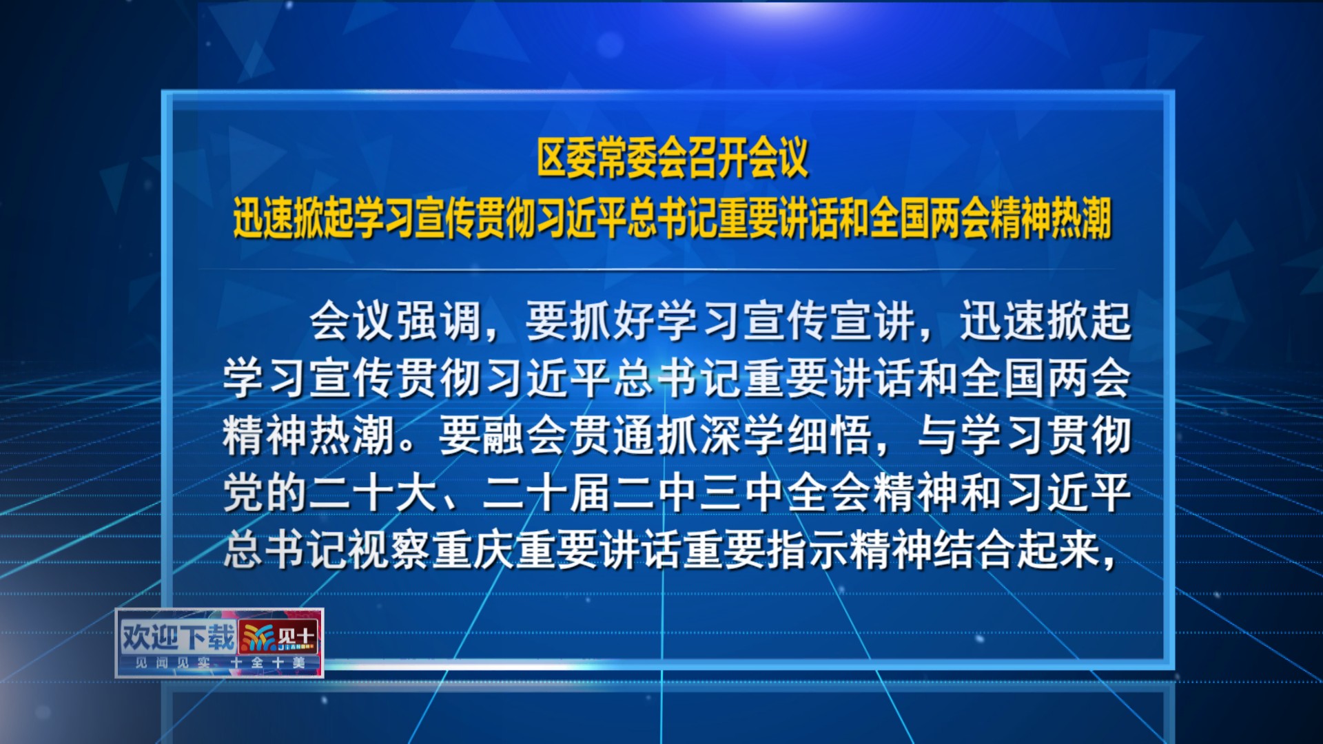 区委常委会召开会议 迅速掀起学习宣传贯彻习近平总书记重要讲话和全国两会精神热潮