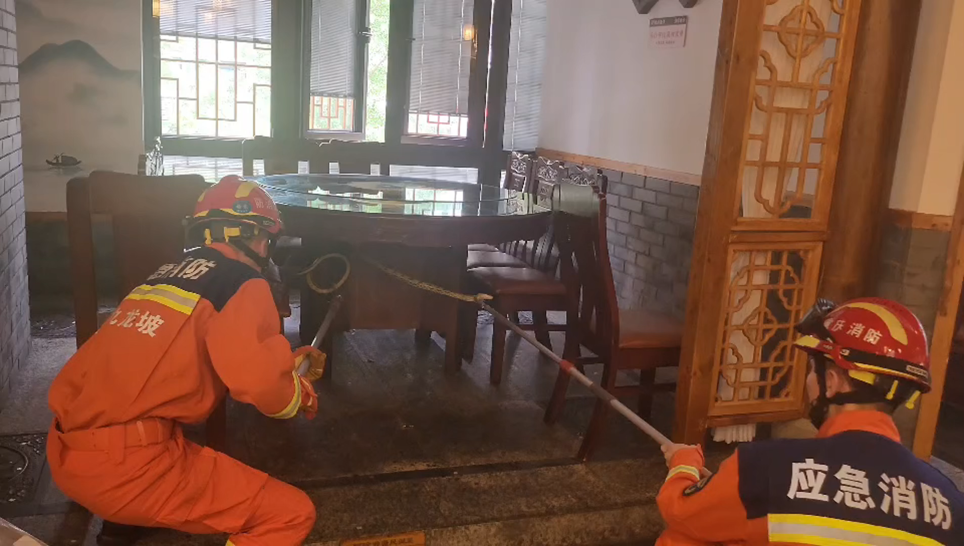 两米长蛇“入侵”饭店 九龙坡消防请走“不速客”