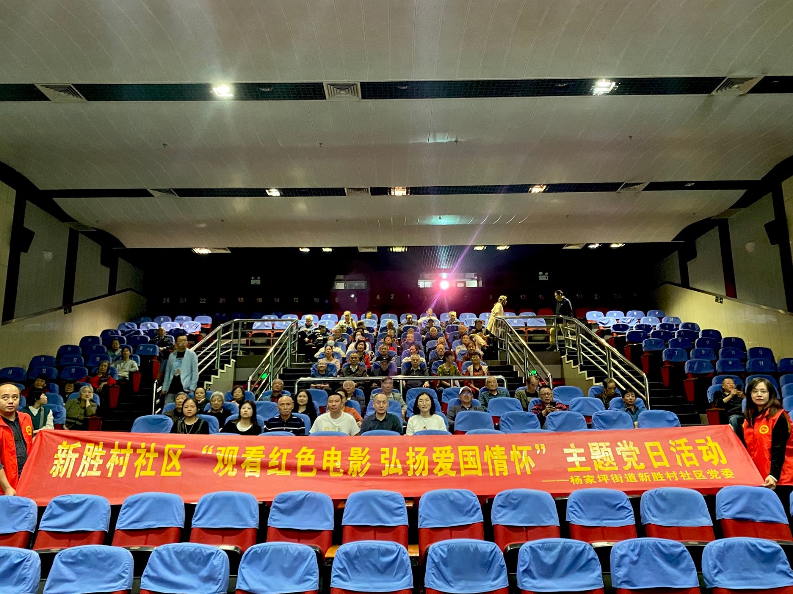 杨家坪街道新胜村社区开展“观看红色电影 弘扬爱国情怀”主题党日活动