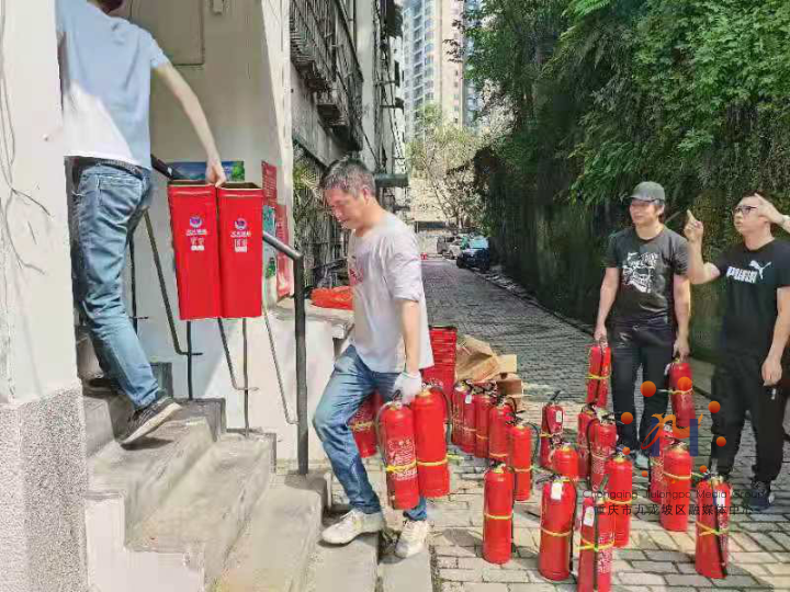 中梁山街道半山一村社区为老旧小区配备消防器材