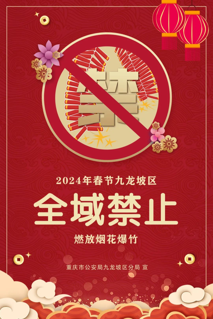 2024年春节期间,九龙坡全区禁放烟花爆竹
