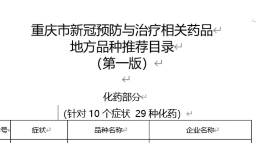 • 针对发热、头疼、咳嗽、咽痛 重庆发布药品地方品种推荐目录(第一版)