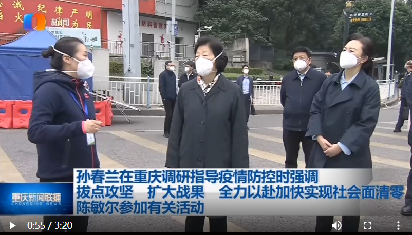 孙春兰在重庆调研指导疫情防控时强调 拔点攻坚 扩大战果 全力以赴加快实现社会面清零 陈敏尔参加有关活动