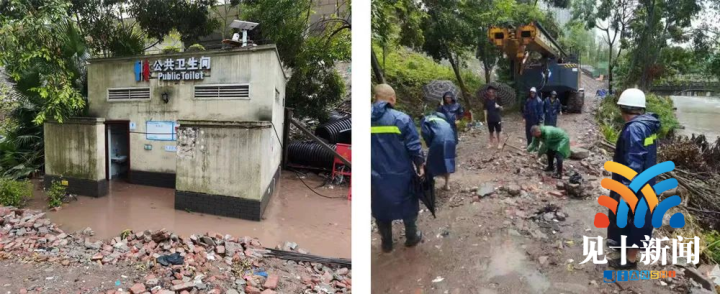 ▲“石坪桥城市绿道公厕被淹了!”区环卫部门收到信息后迅速行动,由于公厕旁地势偏高,又缺乏排水系统,山水流下来汇集到公厕化粪池处,水量过大造成公厕被淹。经过现场研究分析,作业人员刨出了一条临时沟渠,将水引入旁边的小河沟排出。